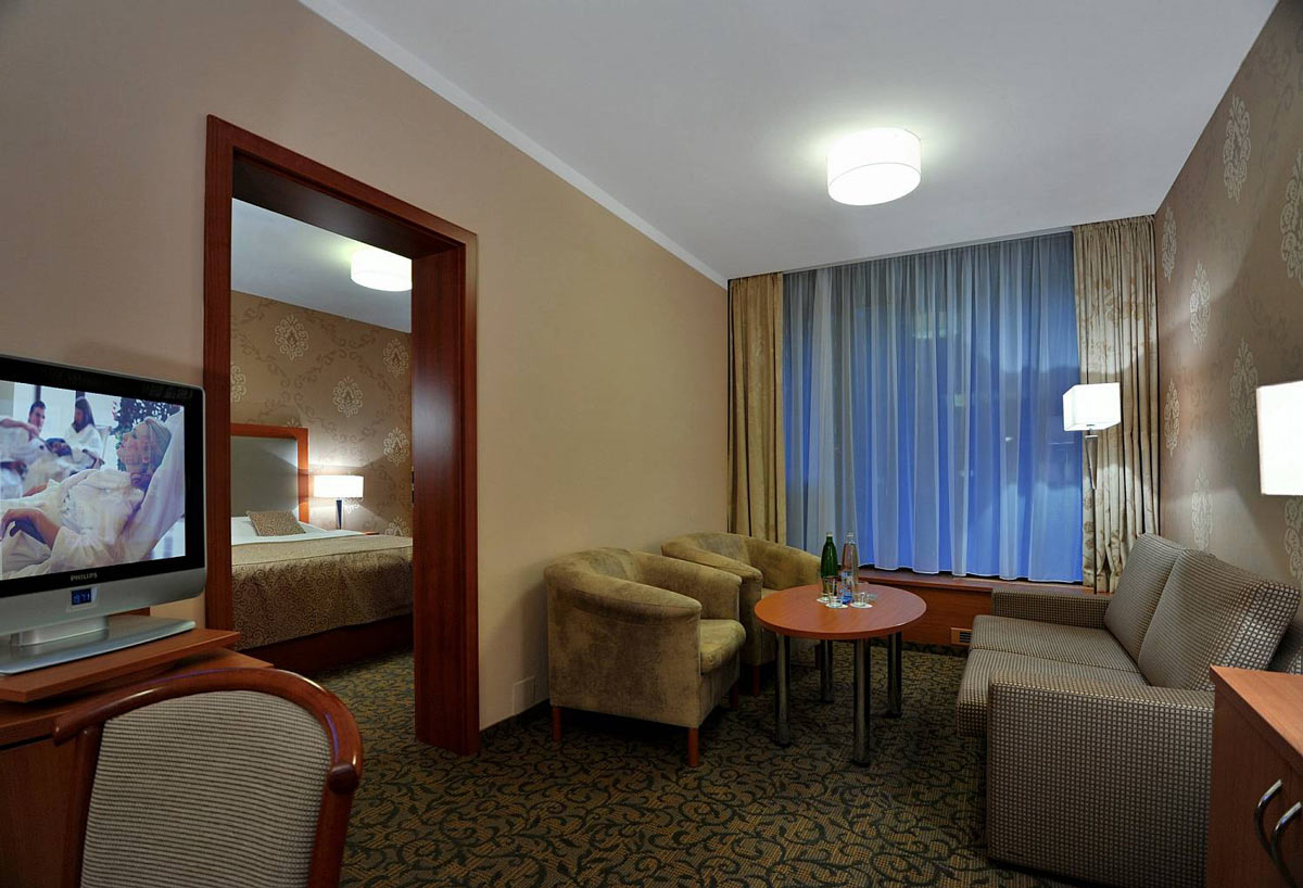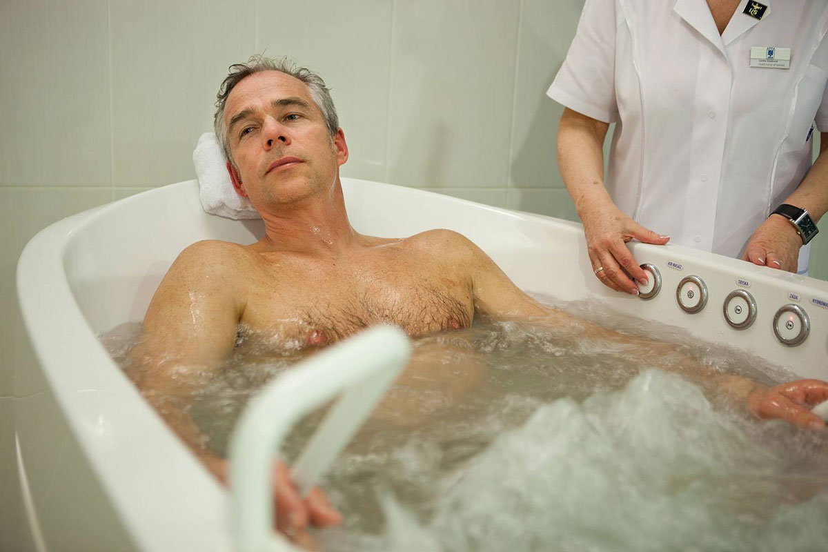 حيث يحتوي على مركز جديد وحديث وواسع يقدم خدمات كثيرة للعلاج والنقاهة. ويقدم المركز أكثر من 50 تمرين مختلف وخدمة للعلاج والنقاهة. بالإضافة الى المياه المعدنية المشهورة في مدينة كارلوفي فاري وهي مياه ساخنة تحتوي على الكربون والكبريت وكلوريد الصوديوم ونسبة الأملاح فيها متوسطة. وتتميز هذه المياه بتاثيرها على إفراز العصارة الهضمية والبنكرياس والتأثير على نشاط المواد الهضمية في الاثنا عشر وتقليل نسبة السكر في الدم والبول وتحسين التوازن الحمضي في الجسم وتقليل نسبة حمض اليوريك في الدم وتقليل نسبة الكولسترول ودهون أخرى في الدم.