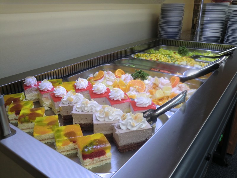 كما يوجد مطعم يقدم وجبات الطعام لنزلاء المنتجع يختار نزلاء المنتجع وجباتهم داخل المطعم بنظام البوفيه المفتوح مع مراعاة النظام الغذائي المتبع لمرضي السكري والمرارة وغيرها، ويمكن توفير نظام حمية للنزلاء الراغبين بذلك. وبالطبع كل الحوم حلال مذبوحة طبقاً للشريعة الإسلامية. كما توجد قهوة عربية تقدم مجموعة واسعة من أنواع الشاي والقهوة. ويوجد أيضا مصلى للمسلمين.